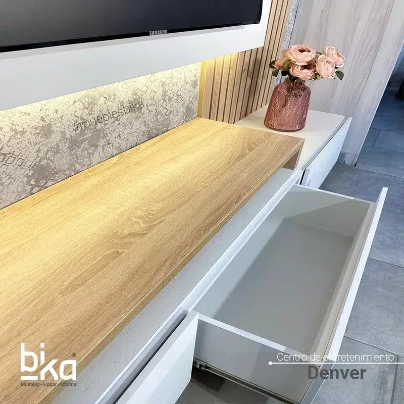 Confía en la calidad de los muebles de Bika. Ofrecemos satisfacción garantizada o te devolvemos tu dinero. ¡Haz la elección correcta con el Centro de Entretenimiento Denver!