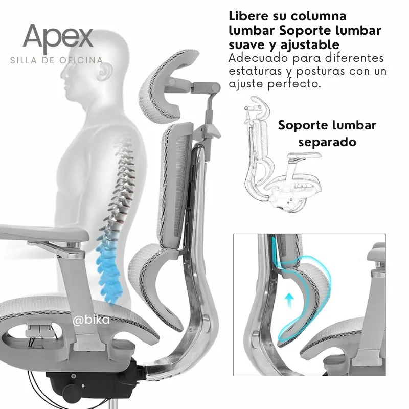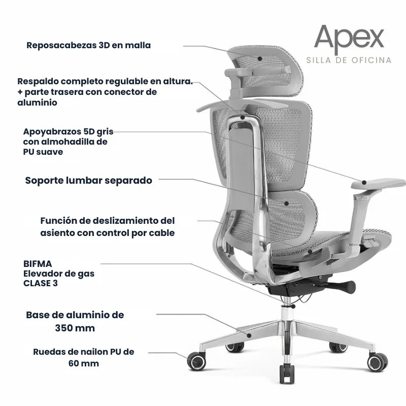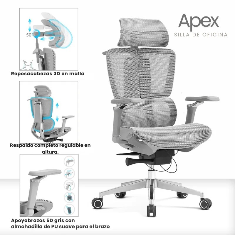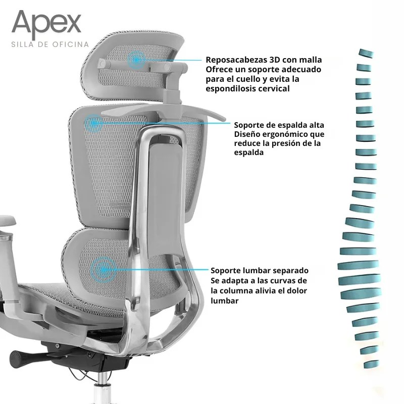 Descubre la Silla de Oficina Apex, el modelo ejecutivo ideal para quienes buscan ergonomía, elegancia y alto rendimiento en su espacio de trabajo. Diseñada para brindar el máximo confort durante largas jornadas laborales, la silla Apex combina tecnología avanzada con un estilo moderno y sofisticado.