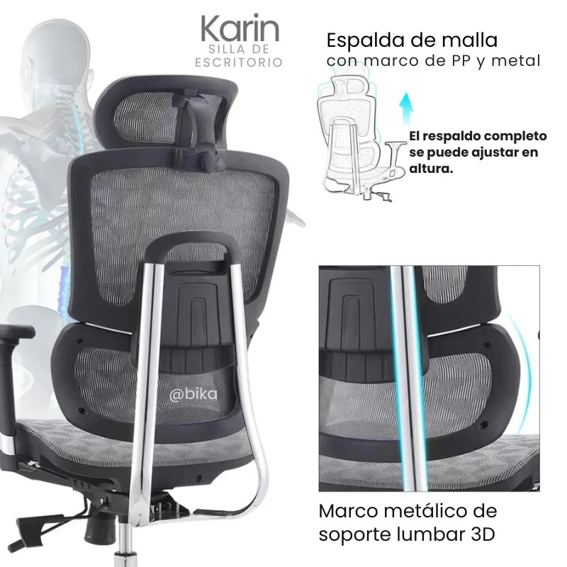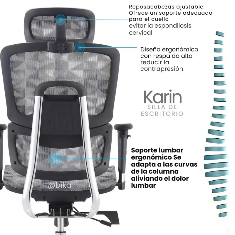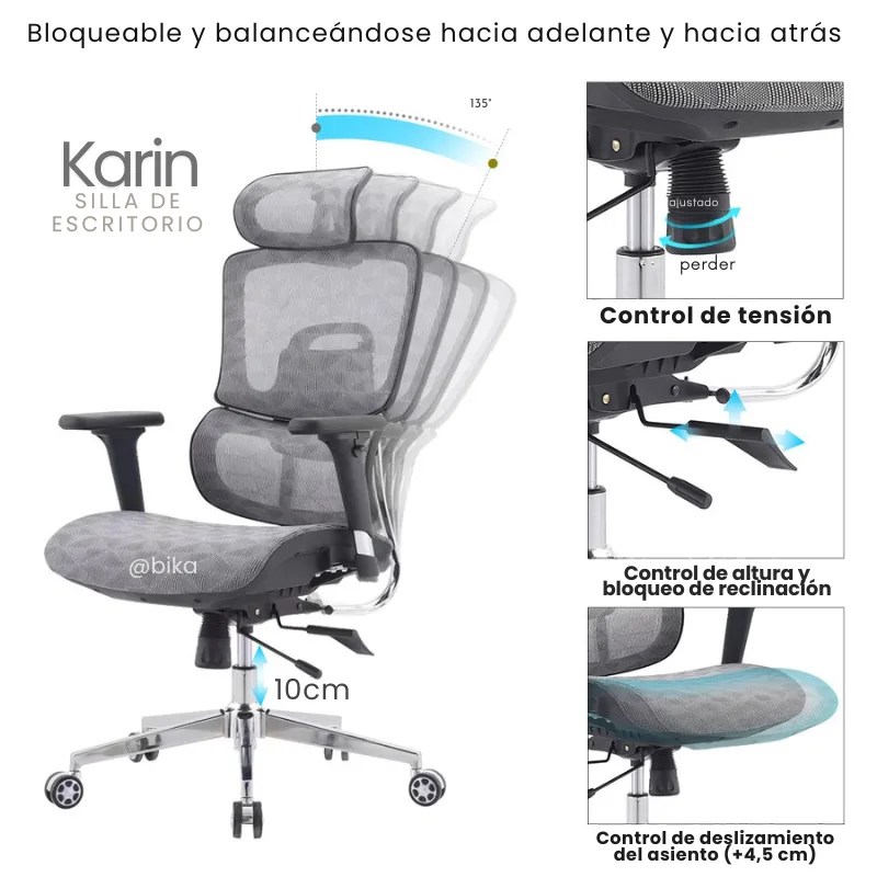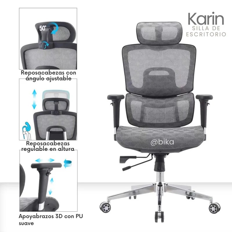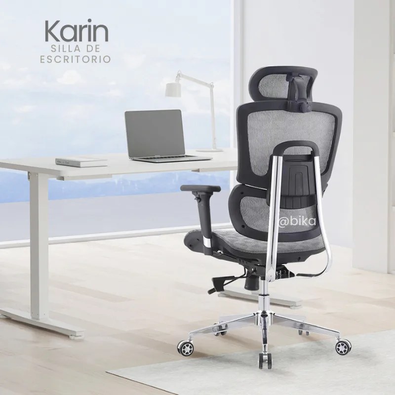 la Karin gris es la silla ejecutiva que equilibra salud, confort y elegancia en un solo diseño.