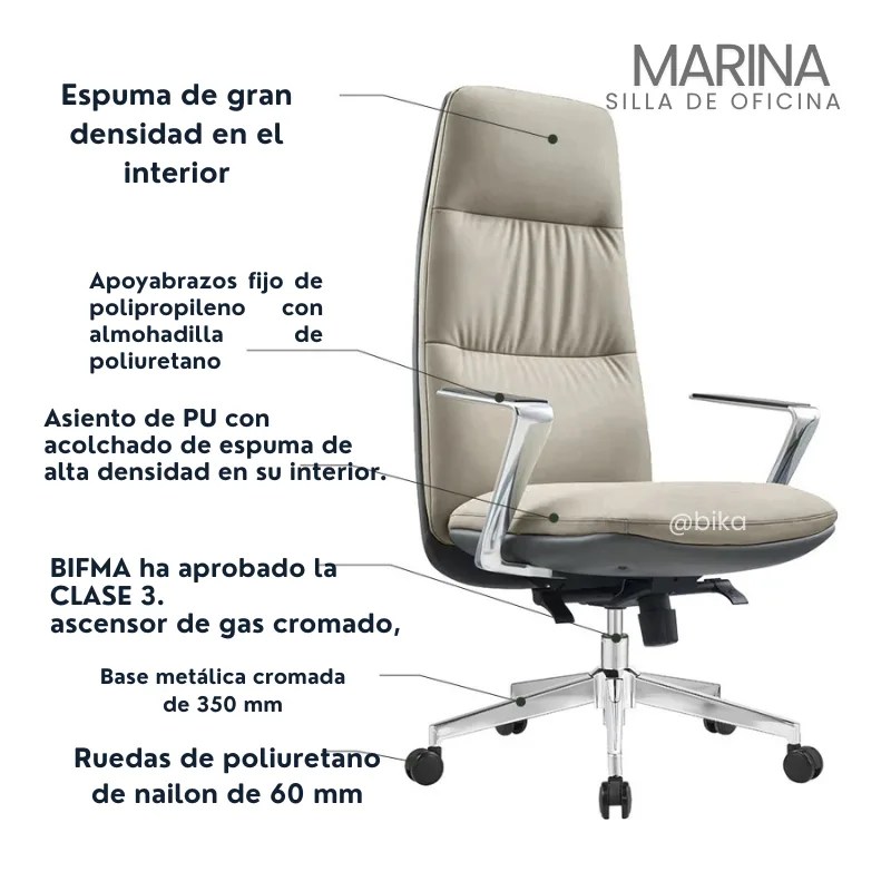 La Silla Presidente Marina no es solo un asiento, es una inversión en bienestar, productividad y estilo. Perfecta para quienes buscan proyectar profesionalismo y disfrutar de un confort de alto nivel mientras trabajan.